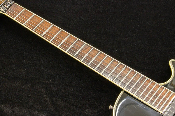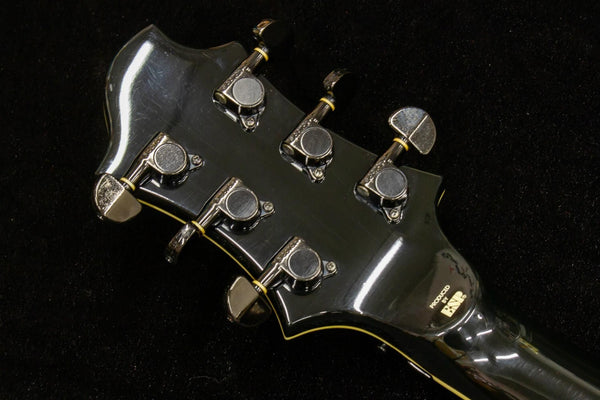 Body condition: Because of the black color, when applied lightly, many scratches are scattered throughout, and the black parts are somewhat rusted. There is a 4mm dent on the top of the body and a 13mm crack on the neck. There is a burn on the binding due to aging. There is a cracked binding near the nut.