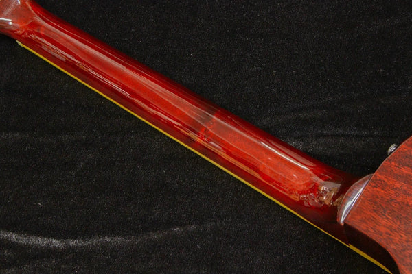 The neck is made of mahogany and the fingerboard is made of rosewood, a traditional combination.