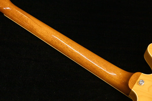 The neck is a one-piece mahogany, and the fingerboard is Indian rosewood.