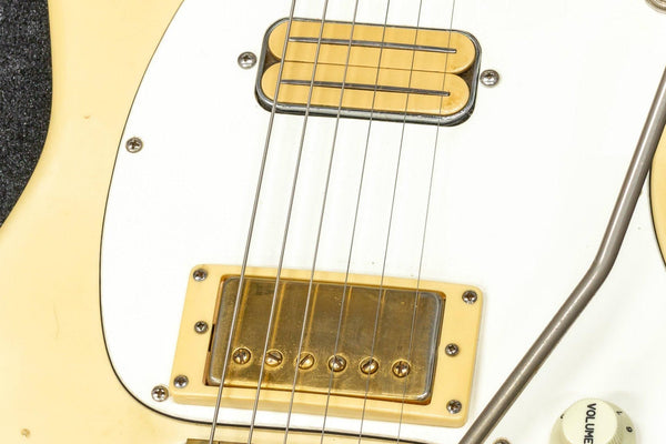 The neck pickup is a Bill Lawrence USA L-500 Rhythm, and the bridge pickup is a numbered PAF with a Pat APPL For sticker.