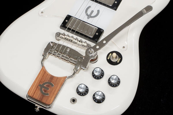 This model is the Crestwood Custom, an improved version of Epiphone's first original solid-state guitar, the Crestwood.