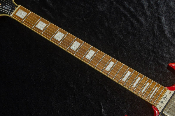 With diamond inlays on the headstock, block inlays on the fingerboard, gold hardware, and a three-pickup configuration, it has the luxurious looks you'd expect from a high-end model.