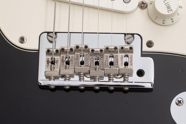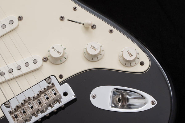 The body is finished in black, giving it a look reminiscent of the Eric Clapton Stratocaster.