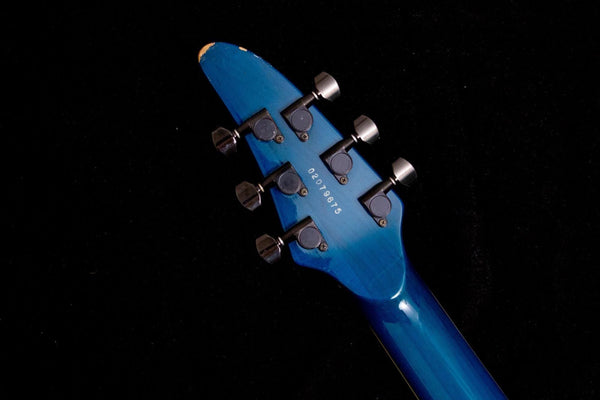 There are scratches, dullness, and rust on the metal parts. Overall, the guitar shows signs of use.