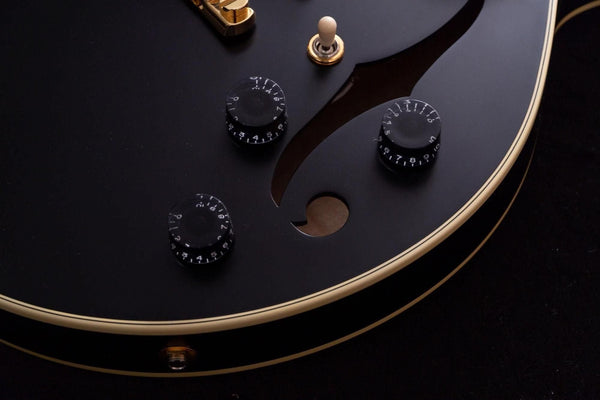 The hollow body construction produces a well-balanced, rich sound.
