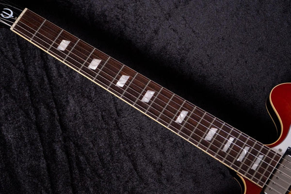 The semi-hollow design with F-holes gives it a distinctive sound that's somewhere between a solid and acoustic guitar, combining just the right amount of resonance and tightness.