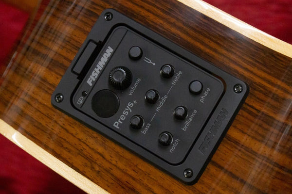 It features a classic design using spruce, rosewood, and mahogany, while modern electronics produce a refined sound.