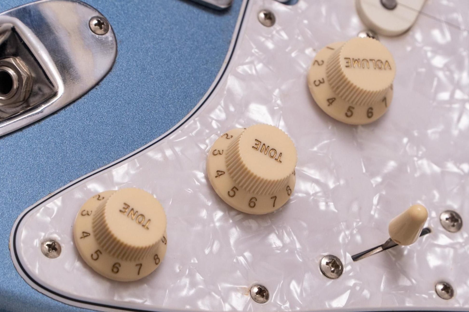 Controls: 1 volume, 2 tone controls, 5-way selector