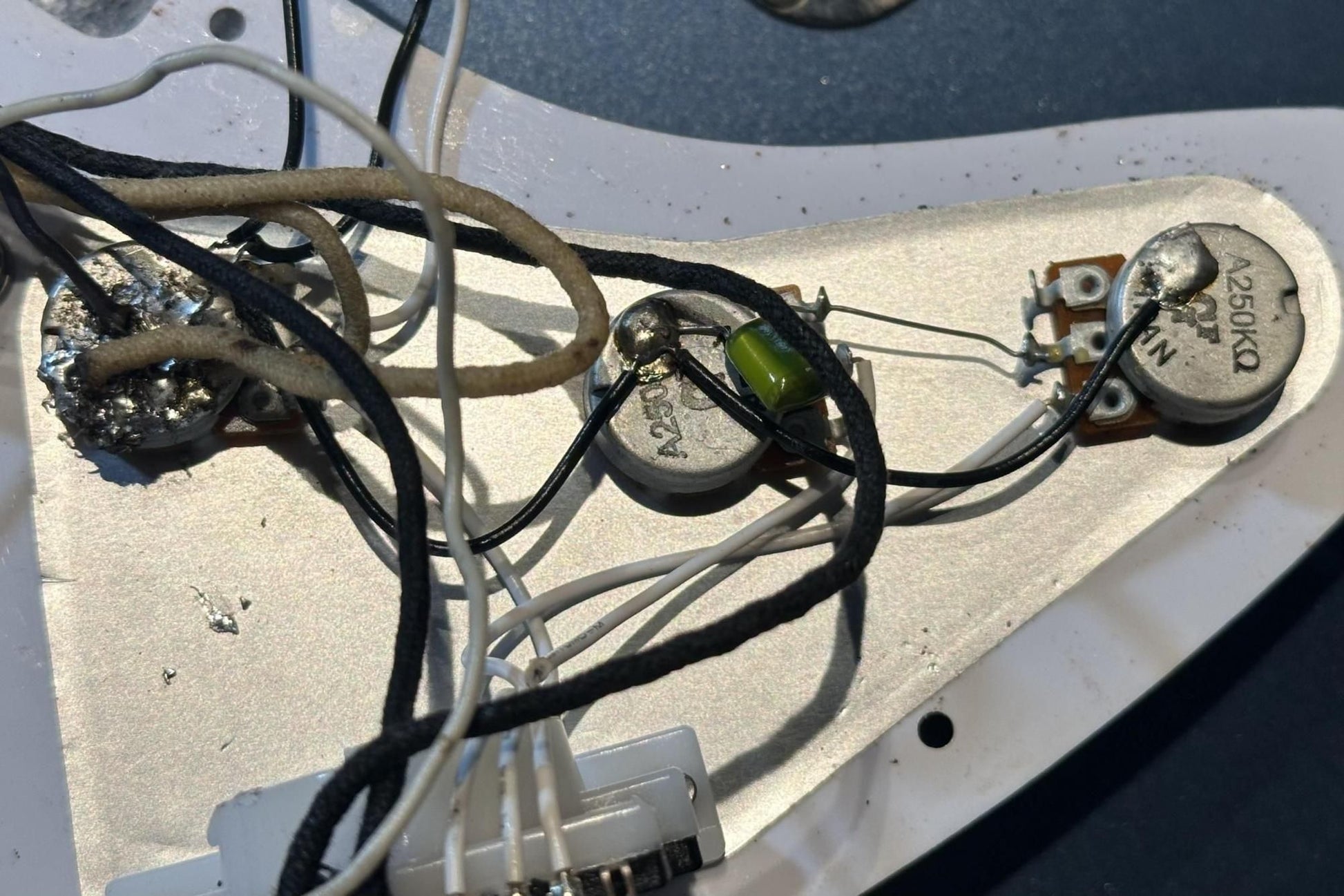 It also has a Lefty neck, but the nut has been replaced and modified for right-handed play.