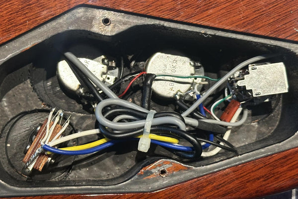 Controls: 2 volumes, 1 tone (pull for low cut), 3-way selector