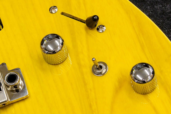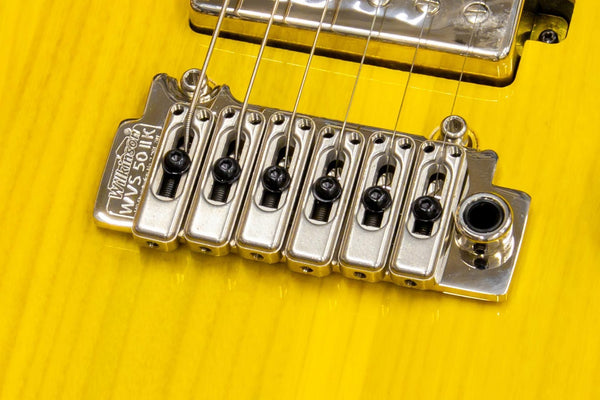 This guitar features a Wilkinson bridge, a Graphtech TUSQ XL nut, and locking tuning pegs, all of which are carefully crafted down to the smallest detail.