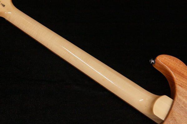 The body features a mahogany back, a maple top, and a beautiful flame maple veneer.