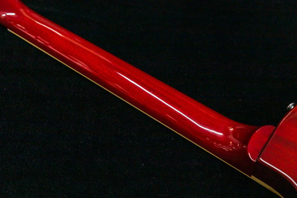 The Les Paul-style body shape features a mahogany back and a maple top.