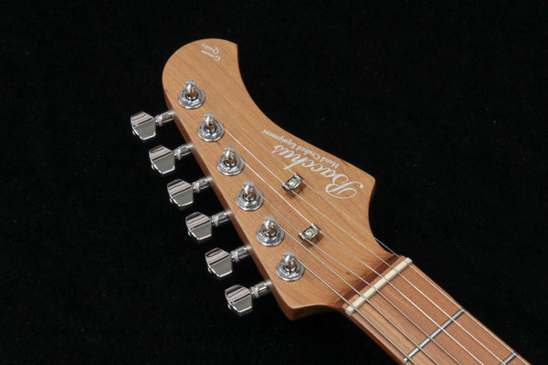 Its main features are a slightly shorter scale length and the use of roasted maple (RSM) for the neck and fingerboard.