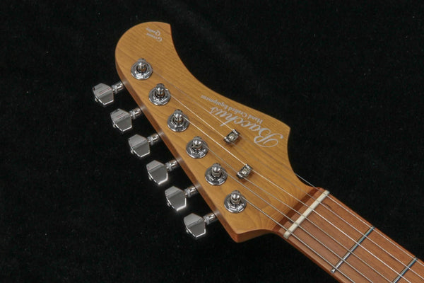The wood used for the neck and fingerboard is roasted maple, also known as thermowood.
