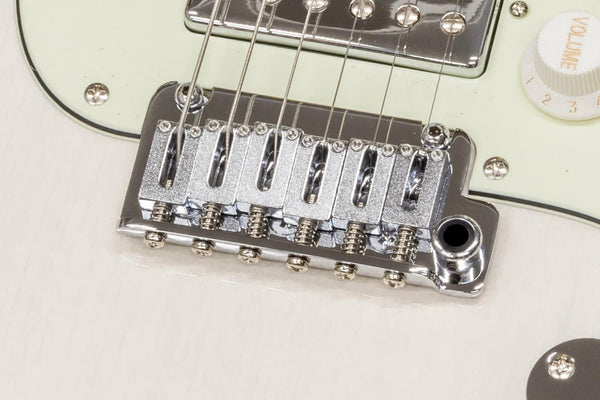 The hardware is also impeccable, with a high-density buffalo bone nut, a GOTOH two-point tremolo unit, Hipshot locking tuning machines, and JESCAR frets.
