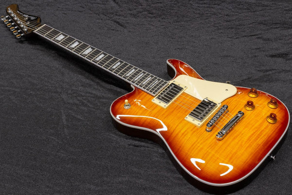 It has a Telecaster-like body shape but is finished with a beautiful arched top.