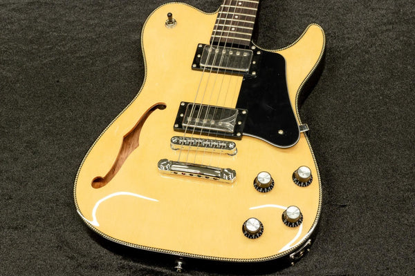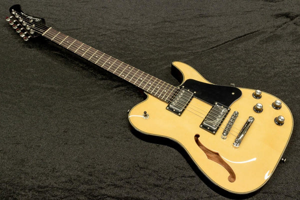 This is a new product from Bacchus with the unique specifications of a Telecaster shape, archtop, and Thinline construction.