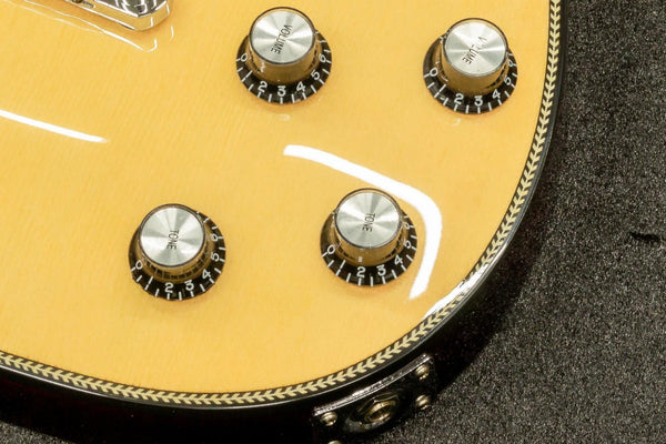 Despite a Telecaster-like body shape, it features a beautiful archtop finish, and its controls and structure give the impression of a skillful blend of Fender and Gibson styles.