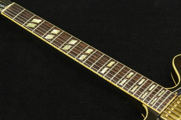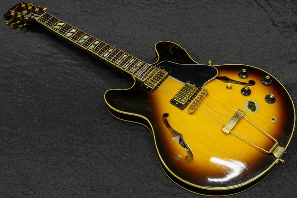 Based on the ES-335, it features various upgrades, including a stereo output, a Varitone switch, and split parallelogram inlays, exclusive to this model in the ES series.