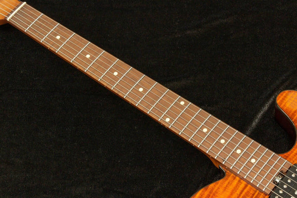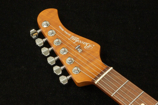 It features a Wilkinson bridge, a Graphtech TUSQ XL nut, locking tuning machines, and stainless steel frets, making it a guitar with meticulous attention to detail.