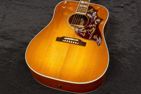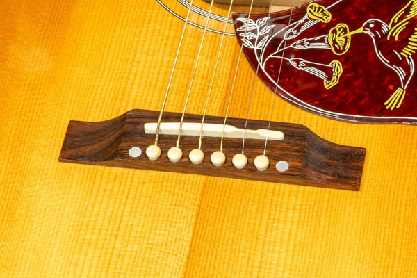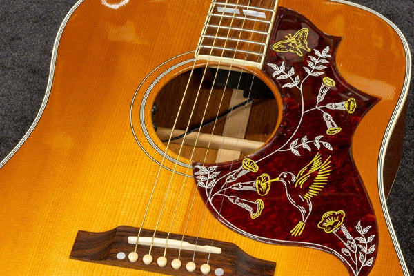 Its large pickguard with a hummingbird design makes it instantly recognizable, and its thick, sweet, soft sound, known as the "honey tone," are favored by many guitarists and singer-songwriters.