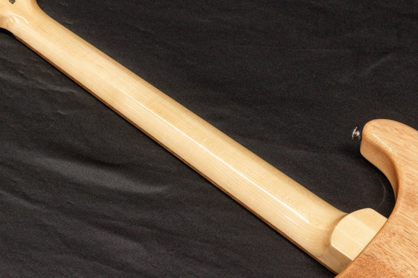 The body back is made of mahogany, the top is made of maple, and while the usual flame maple veneer is used, this guitar features beautiful quilted maple.