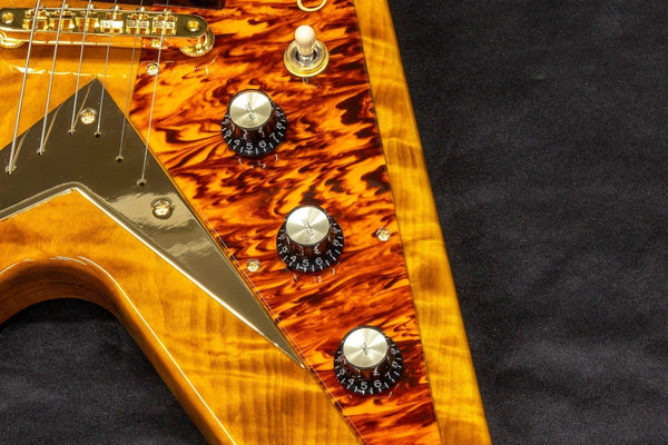 The honeyburst-colored body finish, gold hardware, and tortoiseshell pickguard complete this gorgeous instrument, truly worthy of a show model.