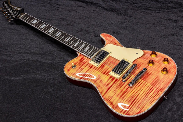 It has a Telecaster-like body shape but is finished with a beautiful arched top.