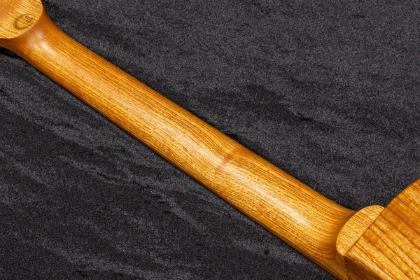 The back and neck are made of sandalwood, also known as Japanese mahogany, and the fingerboard is made of Japanese oak.