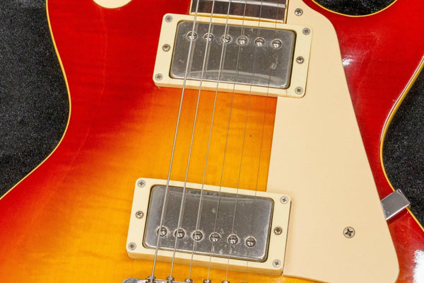 The Les Paul-type body shape features a mahogany back and a maple top.