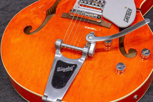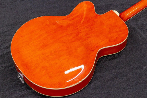 Gretsch's signature luxury features include F-holes on the body, neck binding, and Neo-Classic thumbnail inlays and position markers on the fingerboard.