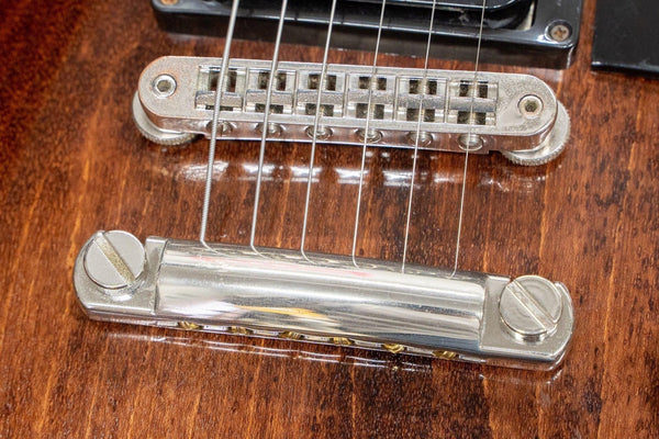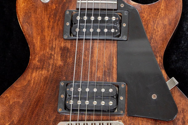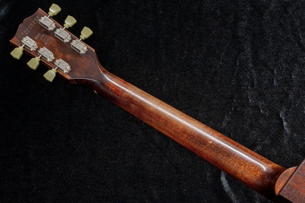 The neck is made of maple, which is rare for a Gibson, and the fingerboard is rosewood.