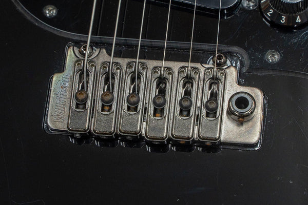 Body condition: There are many small scratches due to the black color. There are many scratches on the pickguard. There is rust on the metal parts. There is some plating peeling on the joint plate and bridge.