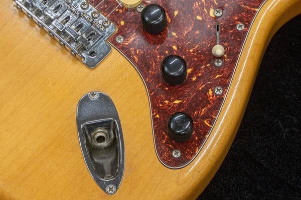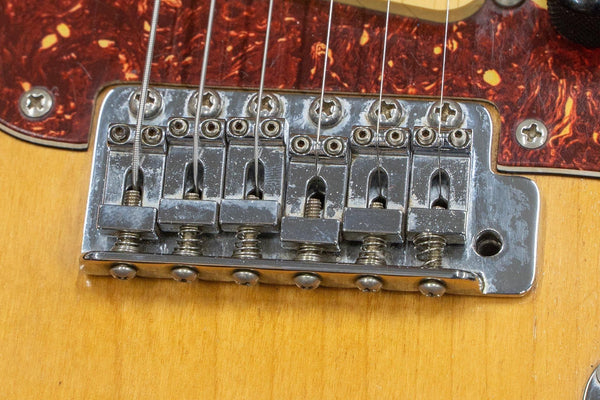 The bridge has been replaced with a zinc die-cast tremolo unit found on Fender Stratocasters from 1972 onwards.