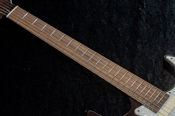 With a pearlescent pickguard, matching headstock, and black parts, it has a simple yet luxurious look.