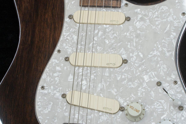 The guitar is equipped with three EMG-SA pickups, known for their low noise and clear sound.