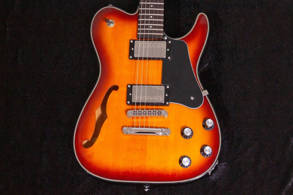 Despite a Telecaster-like body shape, it features a beautiful archtop finish, and its controls and construction give the impression of a skillful blend of Fender and Gibson styles.