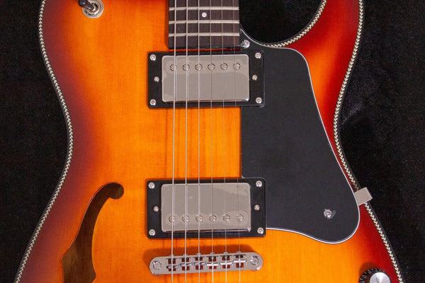 The semi-hollow construction with F-holes gives it a distinctive sound that combines just the right amount of resonance and tightness, somewhere between a solid and acoustic guitar.
