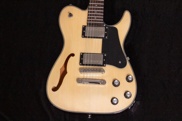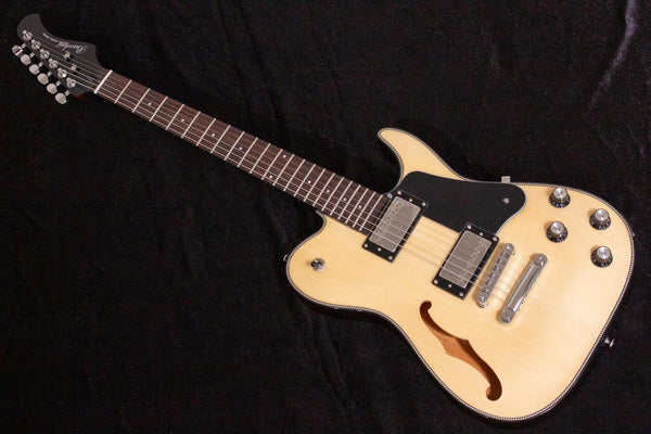 This is a new Bacchus product with the unique specifications of a Telecaster shape, archtop, and Thinline construction.