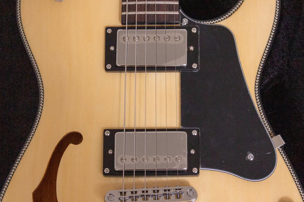 The semi-hollow construction with F-holes gives it a distinctive sound that combines just the right amount of resonance and tightness, somewhere between a solid and acoustic guitar.