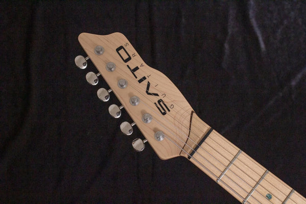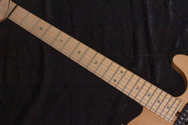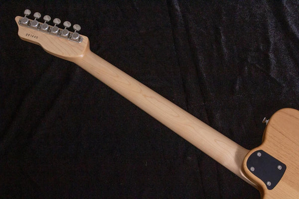 While it has a Telecaster-like body shape, it features modern elements such as a slightly arched top and back contour.