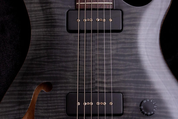 This guitar features a semi-hollow construction, combining just the right amount of resonance and tightness for a sound somewhere between a solid and acoustic guitar.