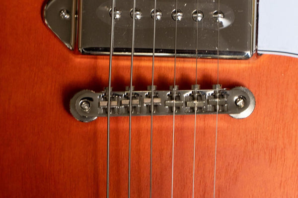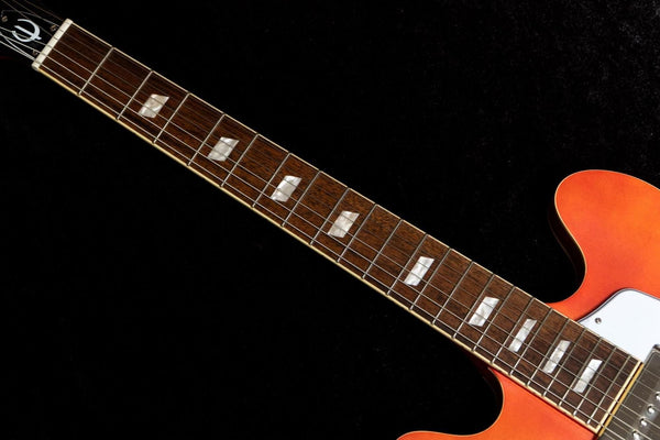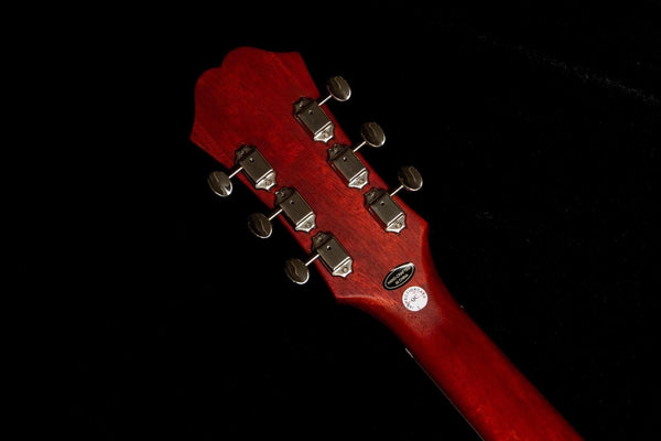 It has a thin, double-cutaway body like a semi-acoustic guitar, but its unique design lacks a center block.