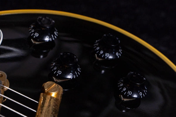 The solid black finish, gold hardware, fingerboard and headstock inlays, and overall binding create a luxurious atmosphere unlike any other model.