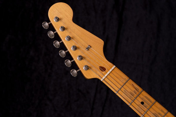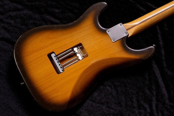 The body and finish are relic-finished, so it's difficult to judge. There is a crack in the pickup cover.