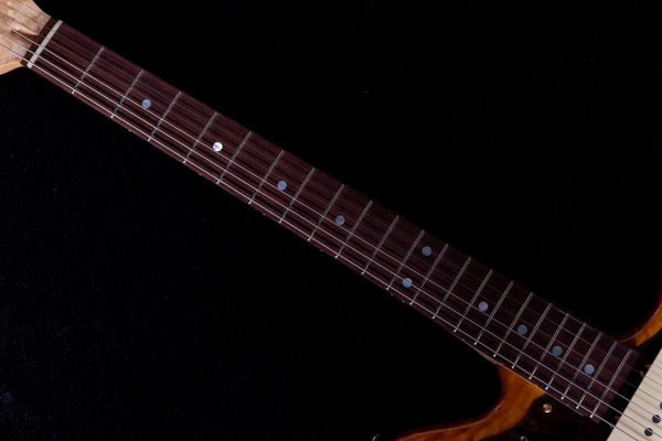 The neck is made of bird's-eye grain maple, and the fingerboard is made of rare Madagascar rosewood.