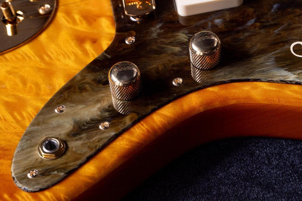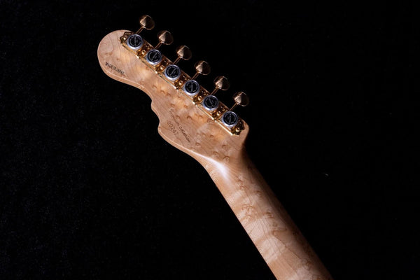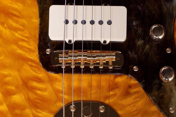 The body top features a beautifully grained quilted maple, complemented by a single-piece alder back, creating a luxurious combination.