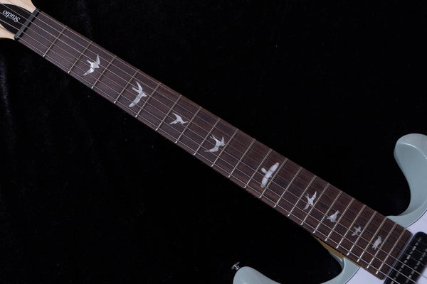 The bridge is a PRS-designed synchronized tremolo bridge.