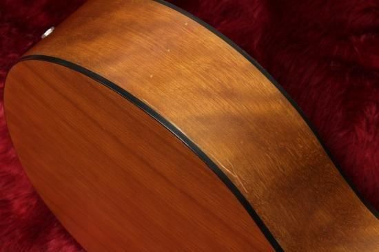 75% of the frets remain, and the truss rod and neck are both in good condition. Due to a loose top and bridge, the current string height is slightly high at the 12th fret, measuring approximately 2.2mm on the 1st string and 3.2mm on the 6th string. There are signs of a repaired crack on the headstock. The body is in player-reviewed condition with some minor scratches.